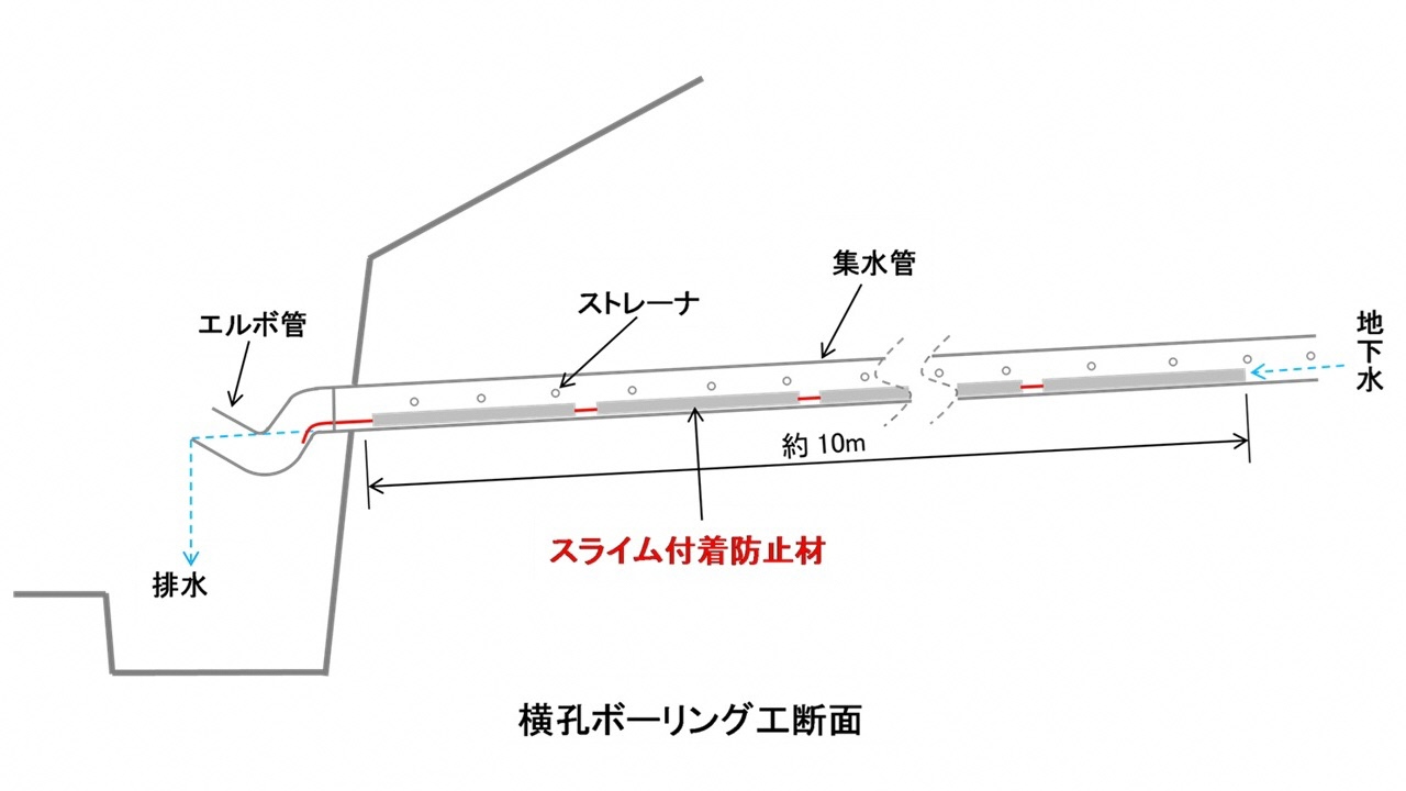 地下水排除施設集水管の鉄スライムを抑制する製品(スライム付着防止材)【一般技術】