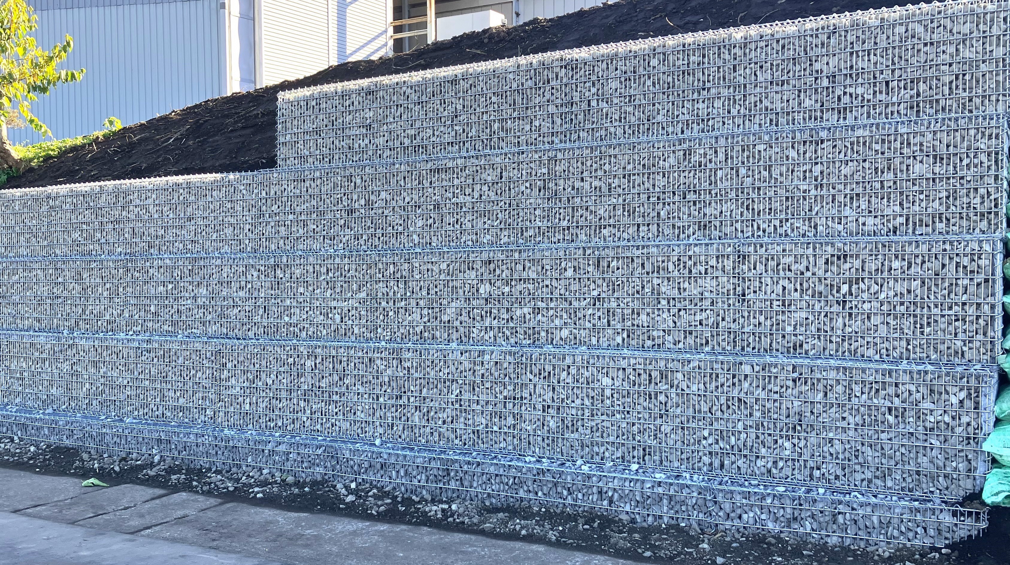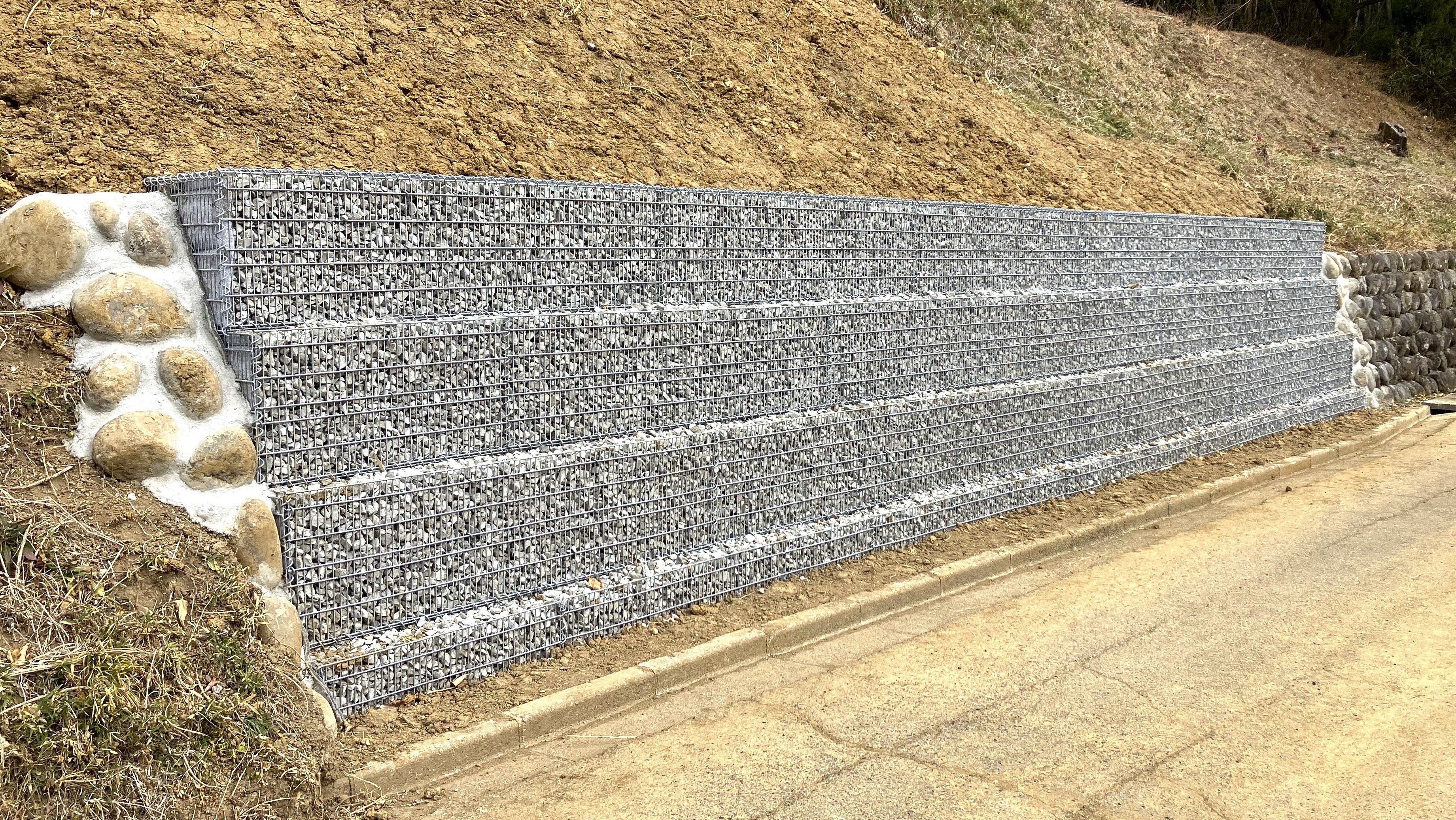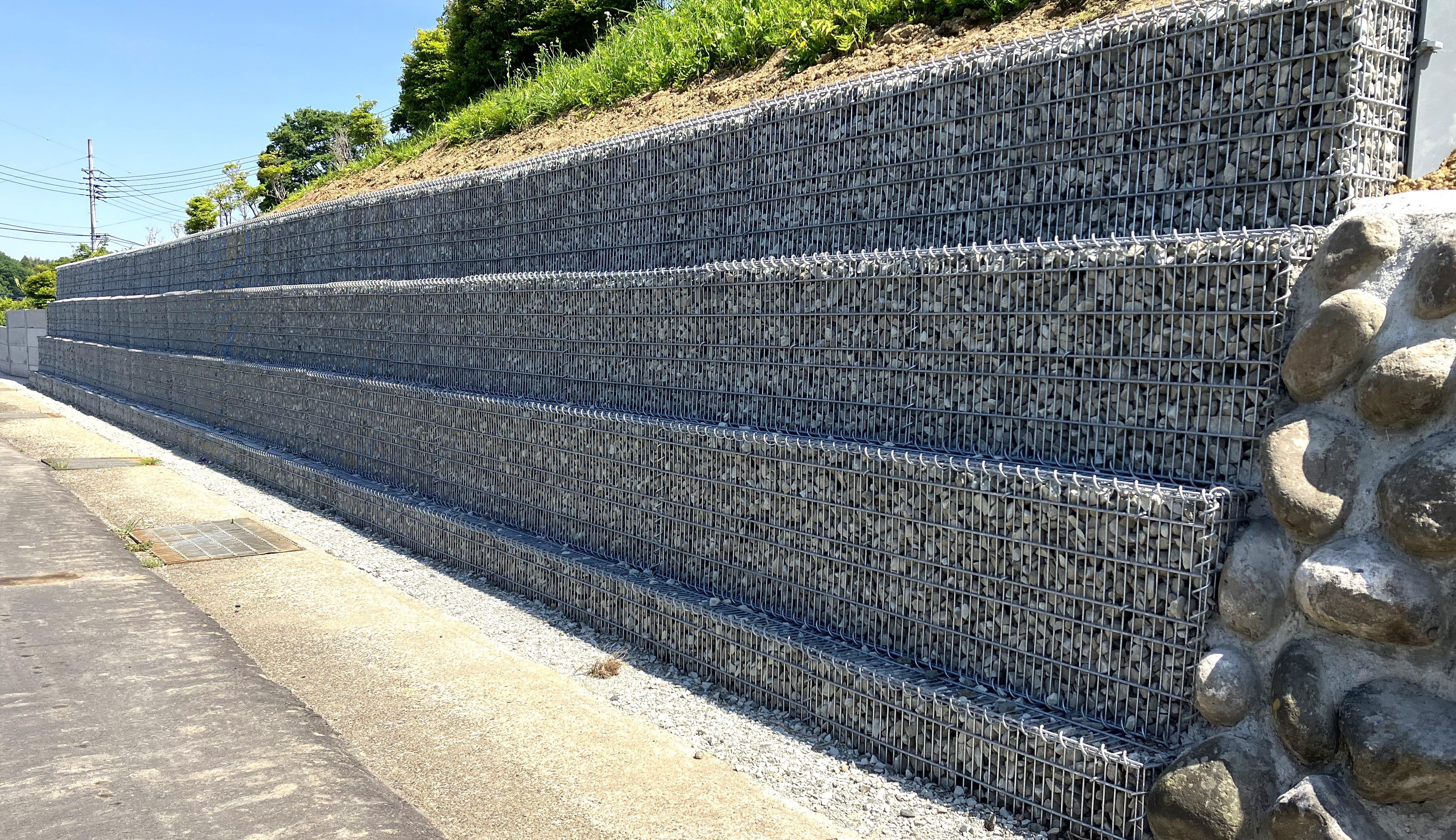 ・20㎜以上(4号・S-30以上)の単粒度砕石を中詰め材として使用できます。 ・従来のかご工法と比べて、石を手作業で並べる必要が無いため、施工が格段に速くなります。 ・大きな石を入手しづらい地域でも施工が可能です。 ・亜鉛アルミ合金めっき鉄線を使用しているため高耐食です。(耐用年数30年以上・本設として使用可) |