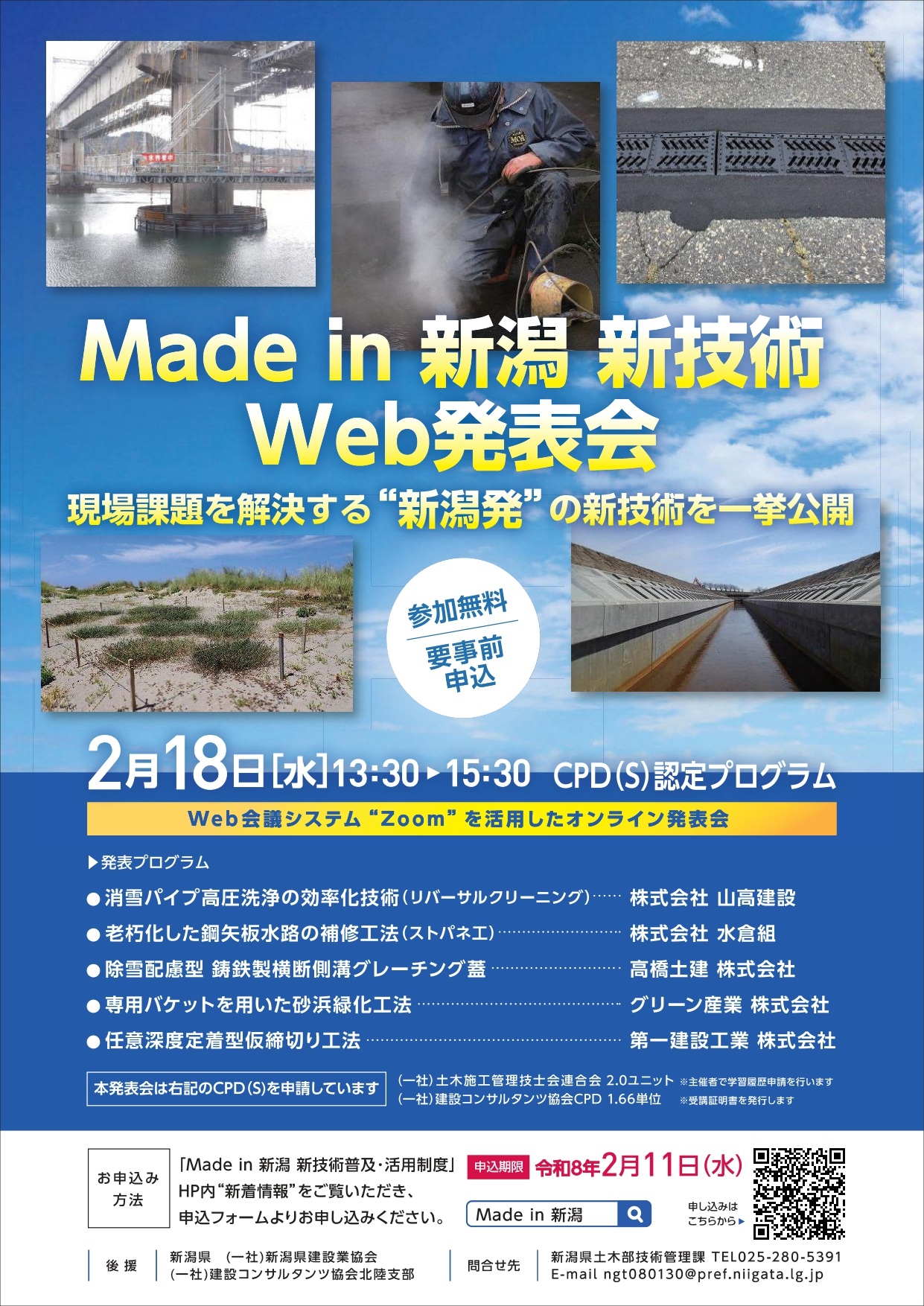 Made in 新潟 新技術[土木・建築]第1回Web発表会 を開催します(2月18日)